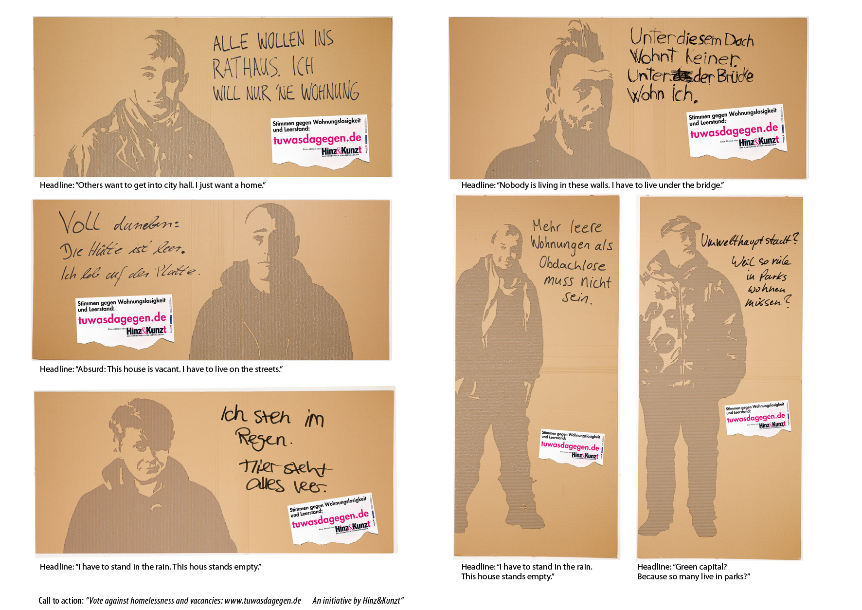 The street magazine Hinz&Kunzt wanted to make the problem of homelessness visible, by giving them a voice and achieving the public in time for the state elections coming up.